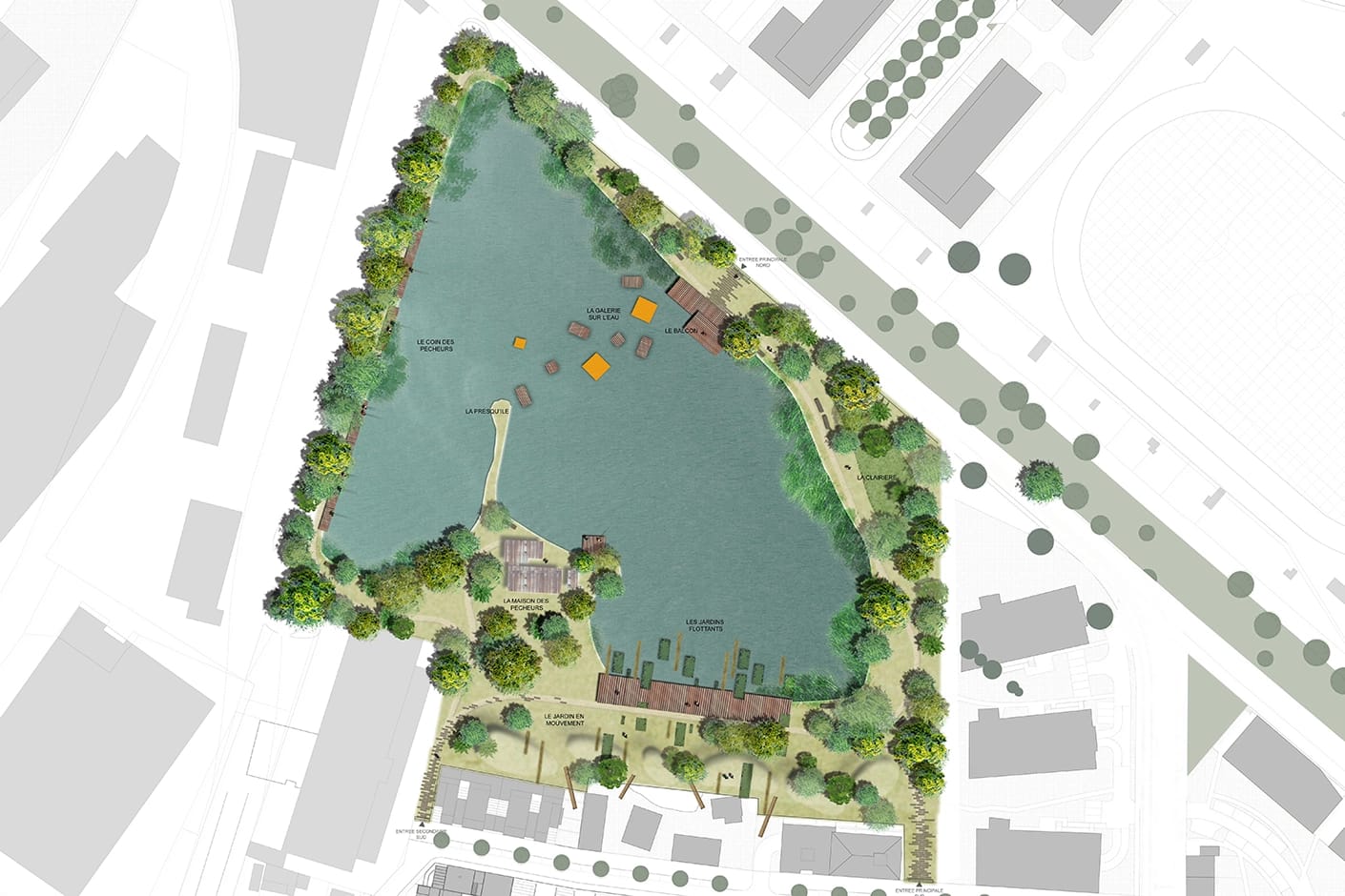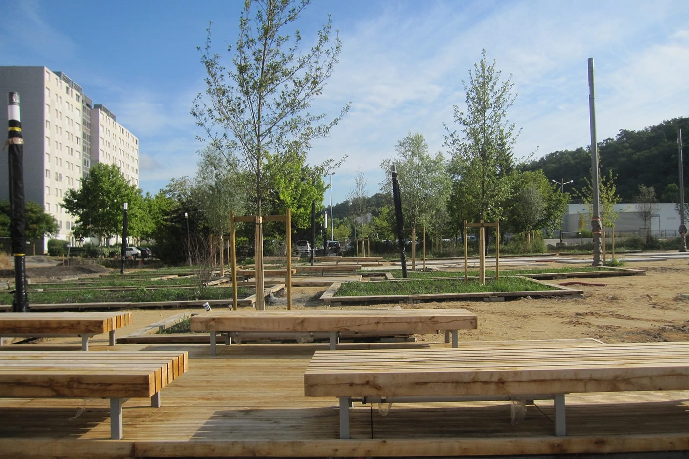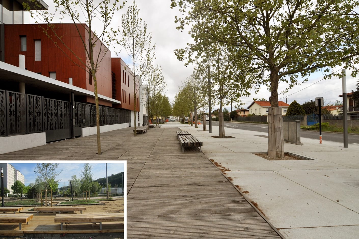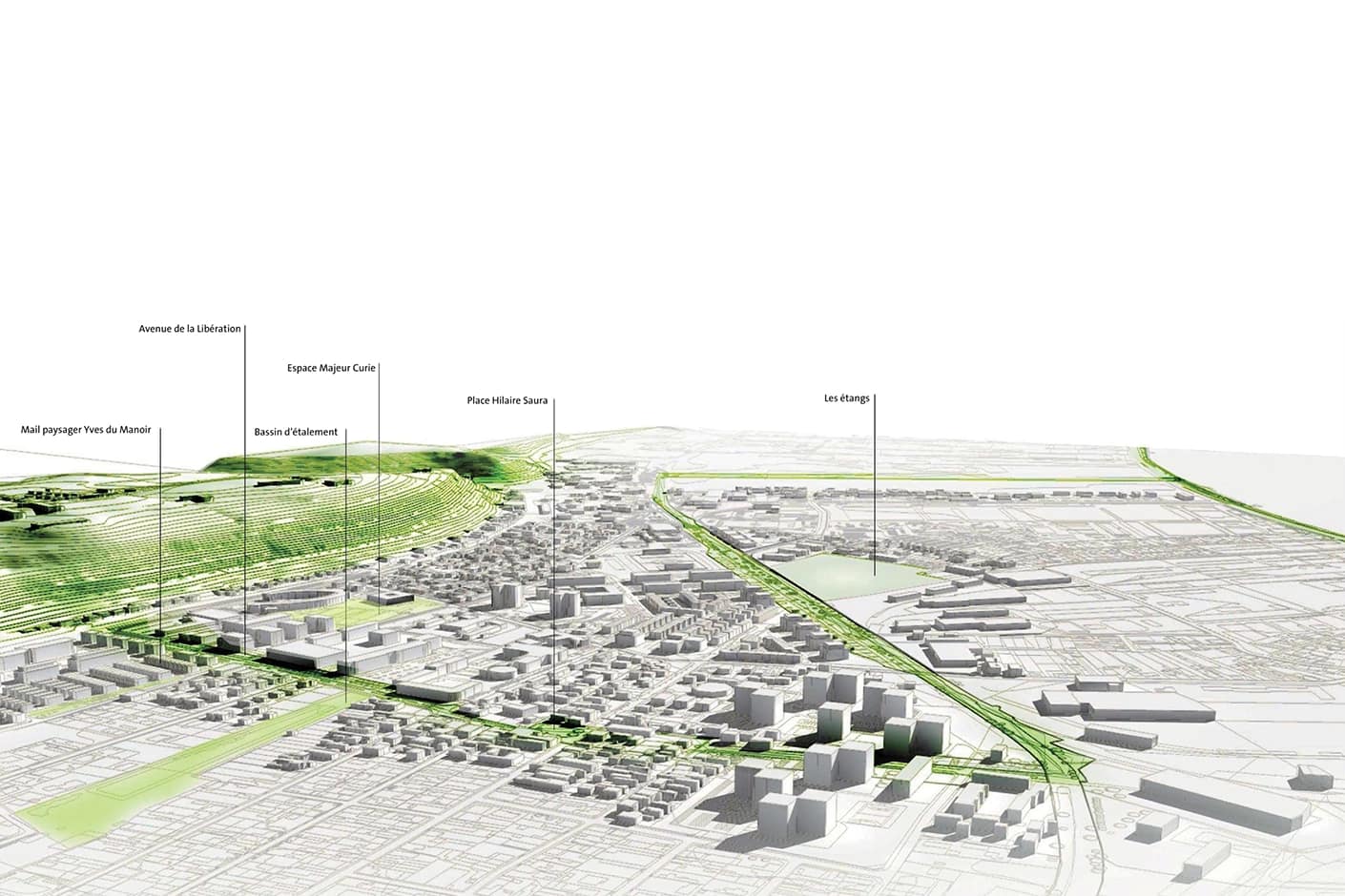 Development of the following public spaces: major public space at Les Etangs, Avenue Libération, Mail de l’Ancien Collège, Avenue Pierre Curie, bassin d’étalement, Place Hilaire Saura