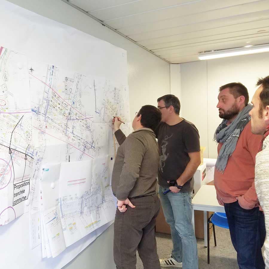 Nous travaillons toujours pour quelqu’un. Cette conscience de l’évidence et notre désir de la satisfaction des acteurs du lieu nous poussent chaque jour à répondre aux enjeux de la concertation publique et de celle des partenaires des opérations sur lesquelles nous travaillons. Seuls ou en nous associant à des agences spécialisées, en organisation directe ou en support du Maître d’ouvrage, nous portons les modes de concertation et la réalisation des médias associés. Nos collaborateurs disposent de l’expérience nécessaire pour proposer les méthodes et moments les plus adéquats pour chaque situation : réunion d’échange, atelier participatif, enquête en ligne, balade en marchant, café-chantier, exposition…