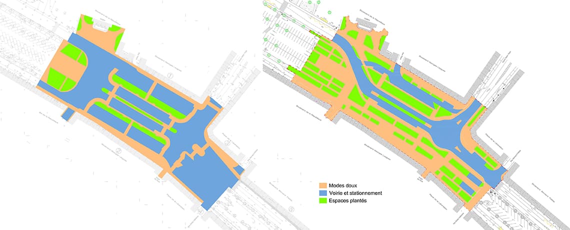 S’inscrivant dans le cadre du programme Action Cœur de Ville, le projet des Allées Georges Leygues a vocation a transformer radicalement la porte d’entrée de la Bastide. Aujourd’hui boulevard routier, il s’agira demain d’allées généreusement plantées et tournées vers les mobilités douces : 50% d’espaces modes doux et plus de 25% de surfaces végétalisées et perméables (les 50% d’espaces modes doux se déversant eux-mêmes dans les espaces verts).