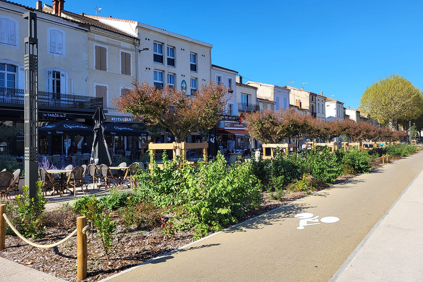 Confort et continuité des modes de déplacements doux, végétalisation et apport de fraicheur, convivialité, attractivité des commerces, valorisation du patrimoine…sont les principales cibles de ces aménagements qui s’inscrivent au sein d’un périmètre Secteur Patrimonial Remarquable.