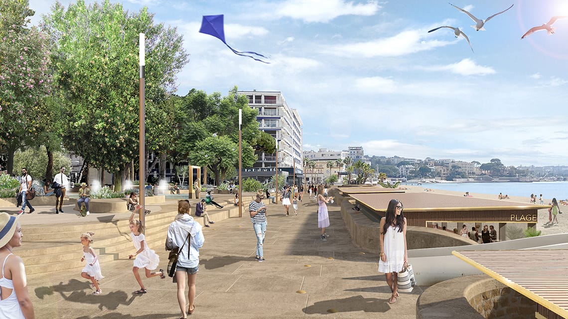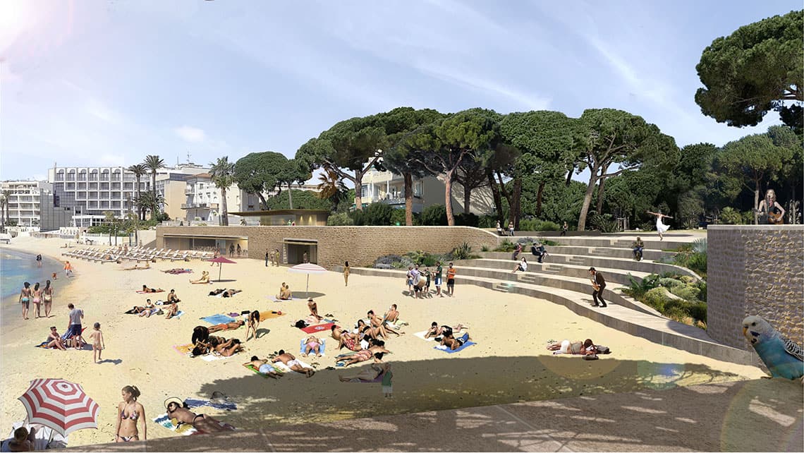 Dans le cadre du réaménagement et de la mise aux normes des établissements de restauration en bord de plage à Juan-les-Pins, requalification de l’espace public et mise en valeur du lien entre la ville et son bord de mer.