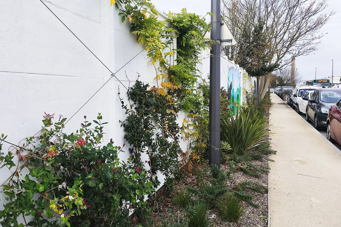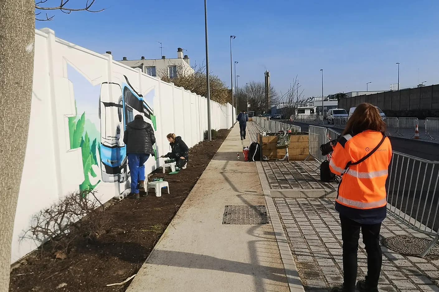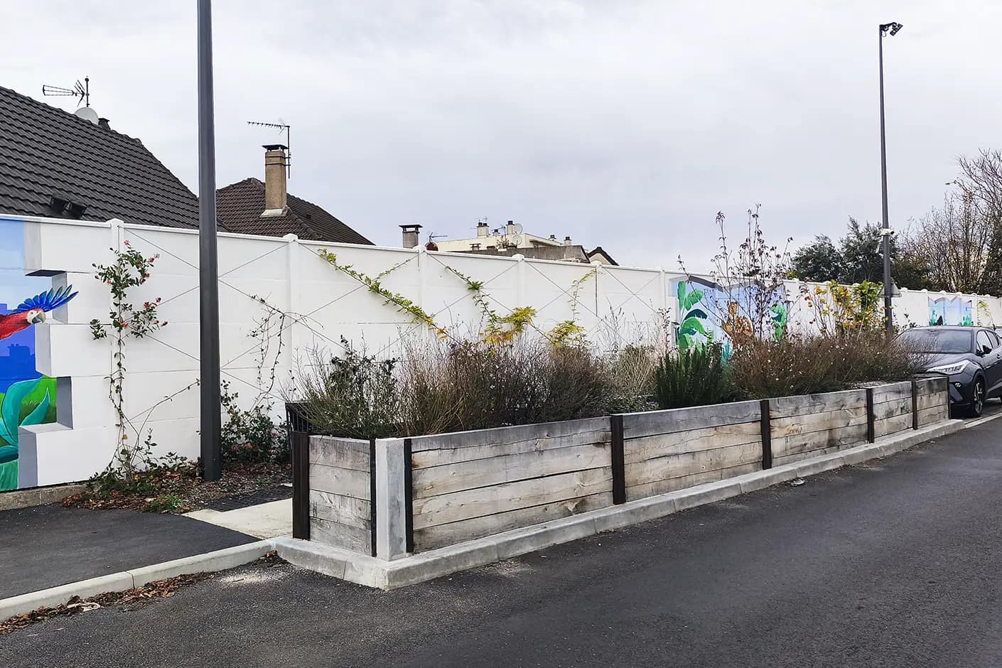 Amélioration de l’insertion visuelle de la voie d’accès au centre bus des Pavillons-sous-Bois. Diagnostic des dysfonctionnements et des faiblesses du site. Conception globale du projet avec forts objectifs de déminéralisation (stationnements perméables), de végétalisation et de valorisation des rives. Maîtrise d’œuvre complète comprenant l’accompagnement du MOA dans la recherche d’un artiste et le suivi de réalisation des fresques.