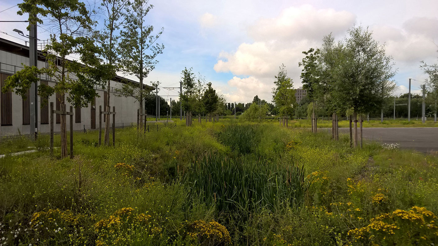 Composition : un hall de maintenance, un bâtiment d’exploitation, une station de lavage, des parkings, un bassin de régulation, une voie de grand lavage, 6 voies de stockage et des espaces verts.