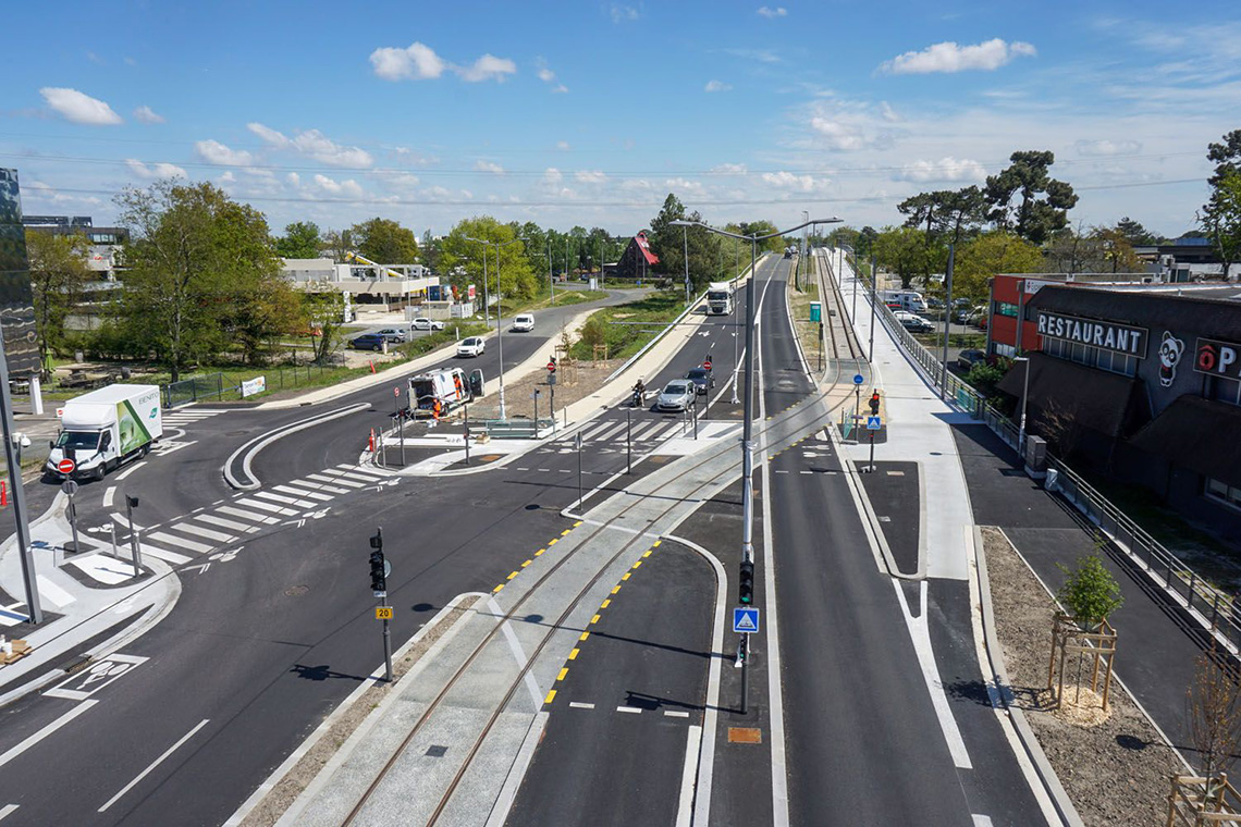 Maîtrise d’œuvre complète pour l’amélioration de la desserte en transport en commun de la zone aéroportuaire de Bordeaux Mérignac depuis Bordeaux centre et vers le réseau ferroviaire. Extension de la ligne A du Tramway jusqu’à l’aéroport : 5 km, 5 stations, un ouvrage d’art cycles et tramway, un parking relais… et création d’une ligne de Bus à Niveau de Service Performant (BNSP) entre le terminus de la ligne A du tramway (le Haillan-Rostand) et Gradignan-centre.