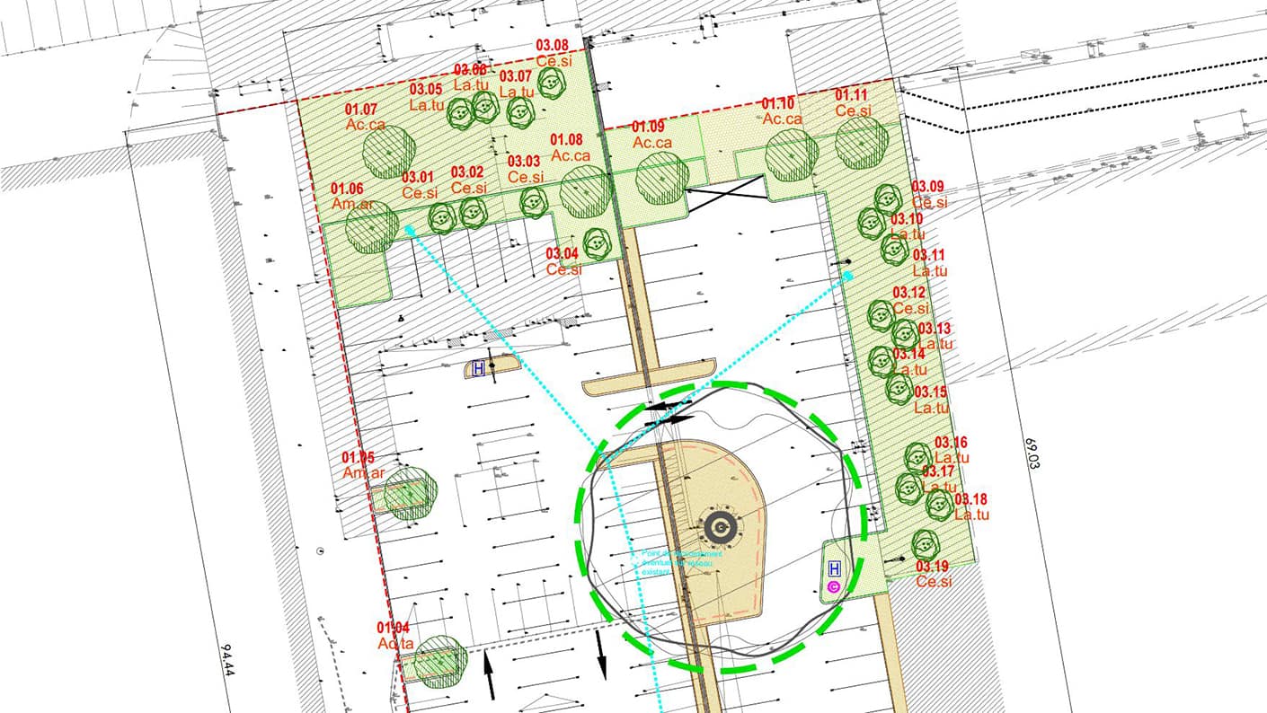 Préservation d’un Platane existant avec sanctuarisation d’une surface importante sans travaux.
