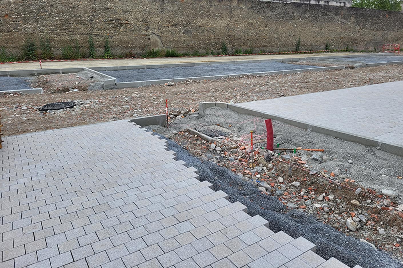 Conservation d’un mur en galets déterminé à protéger par l’Architecte des Bâtiments de France.
