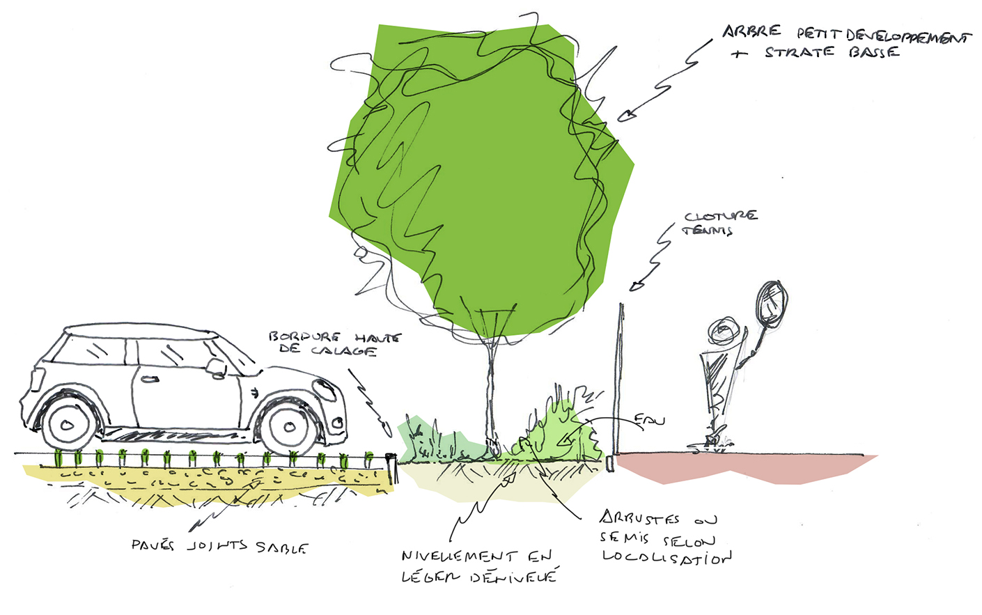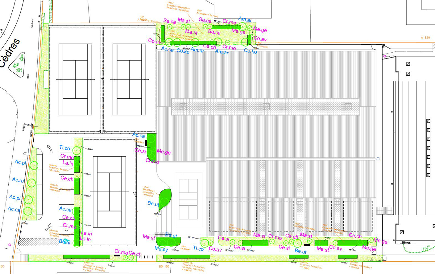Création d’un nouvel équipement sportif à destination du club local, comprenant un club-house, 4 cours de tennis et des pistes de padel couverts, 3 cours de tennis extérieurs.