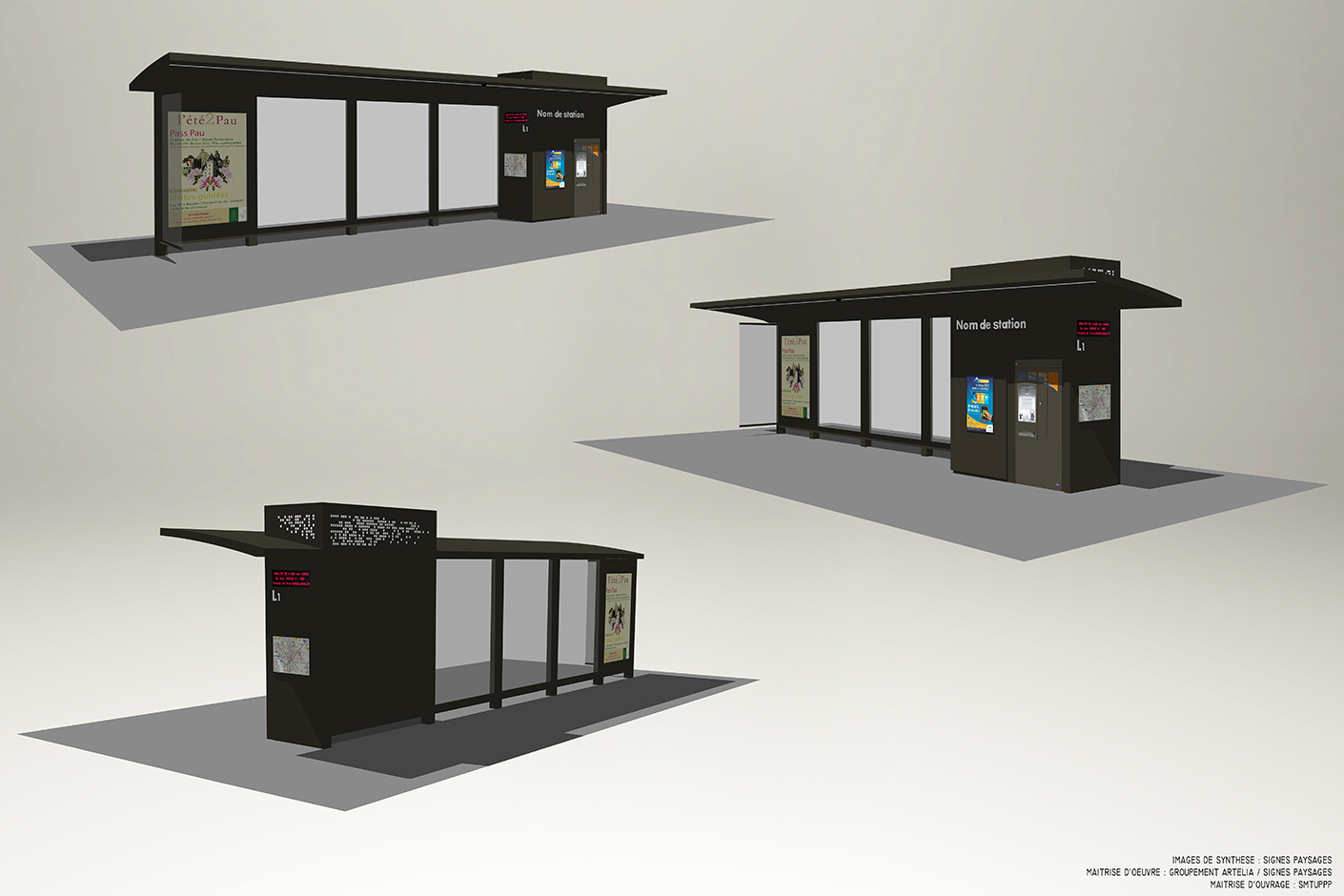 Design et suivi de fabrication et de pose des mobiliers des stations du « FéBUS », le BHNS de Pau.