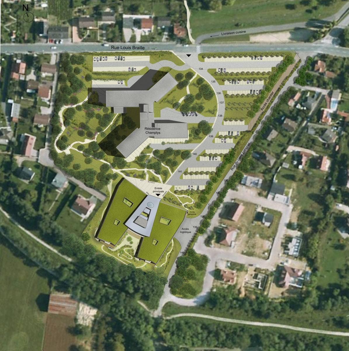 Le projet naît d’une nécessité de faire évoluer les lieux d’accueil et du souci de répondre au mieux à l’évolution des besoins. Aussi cette construction neuve s’inscrit dans un projet global : il s’agit de pouvoir accueillir des résidents venant des deux sites : le Panier Vert et Champlys de façon à permettre la remise aux normes de ces bâtiments.