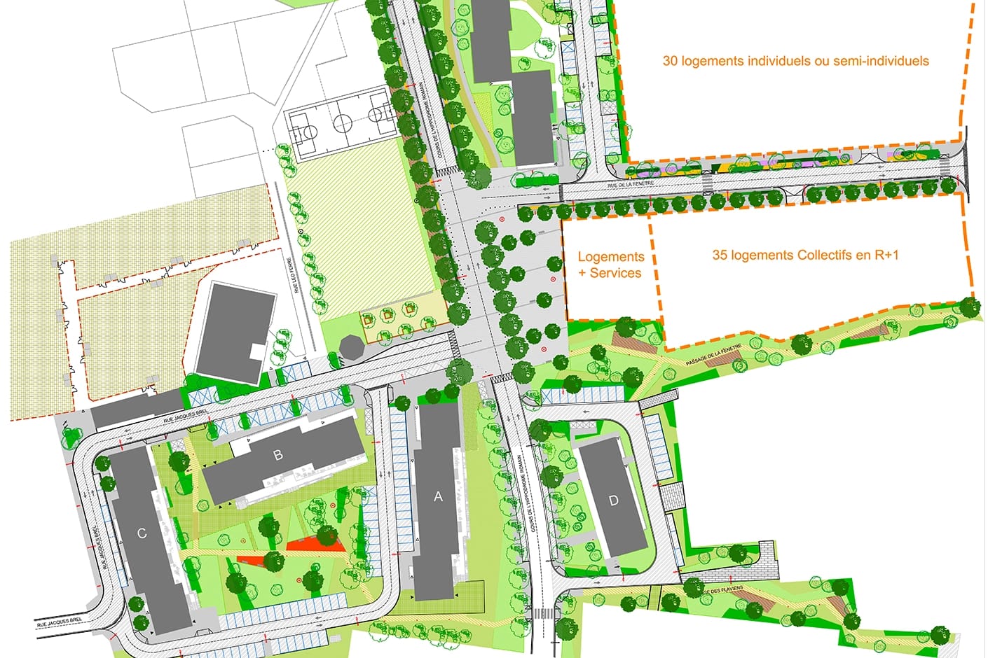 - prolongement rues des Aubépines et Brel