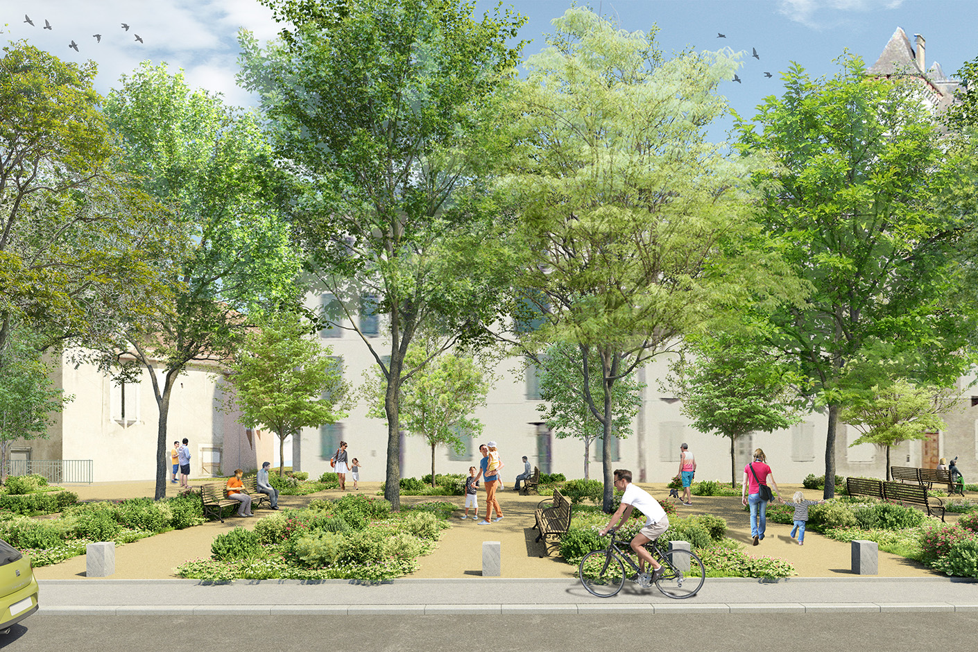 Nos missions : réaménagement intégral de l’espace public, création d’un jardin médiéval, mise en scène de la Tour de la Monnaie, création d’une place de quartier, insertion d’un giratoire urbain et modification des circulations, réaménagement du pont du 14 juillet avec insertion de pistes cyclables et création d’un nouveau garde-corps, aménagement de l’avenue Jean Biray….
