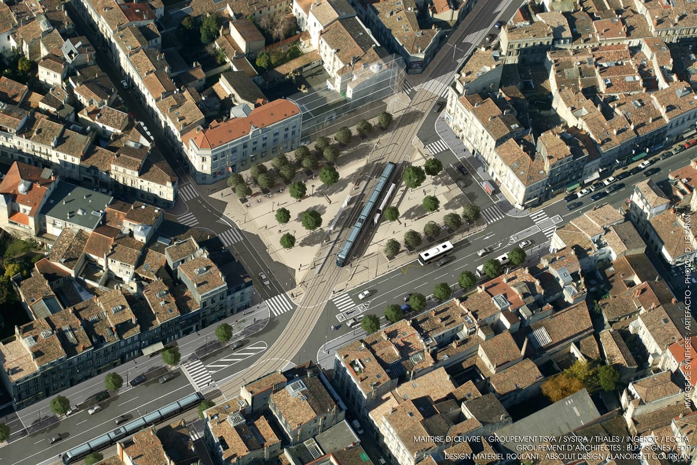 Projet réalisé dans le cadre de la maîtrise d’œuvre complète pour la création de la Ligne C du tramway de Bordeaux (phase 2) et aménagement des espaces publics, de façades à façades.