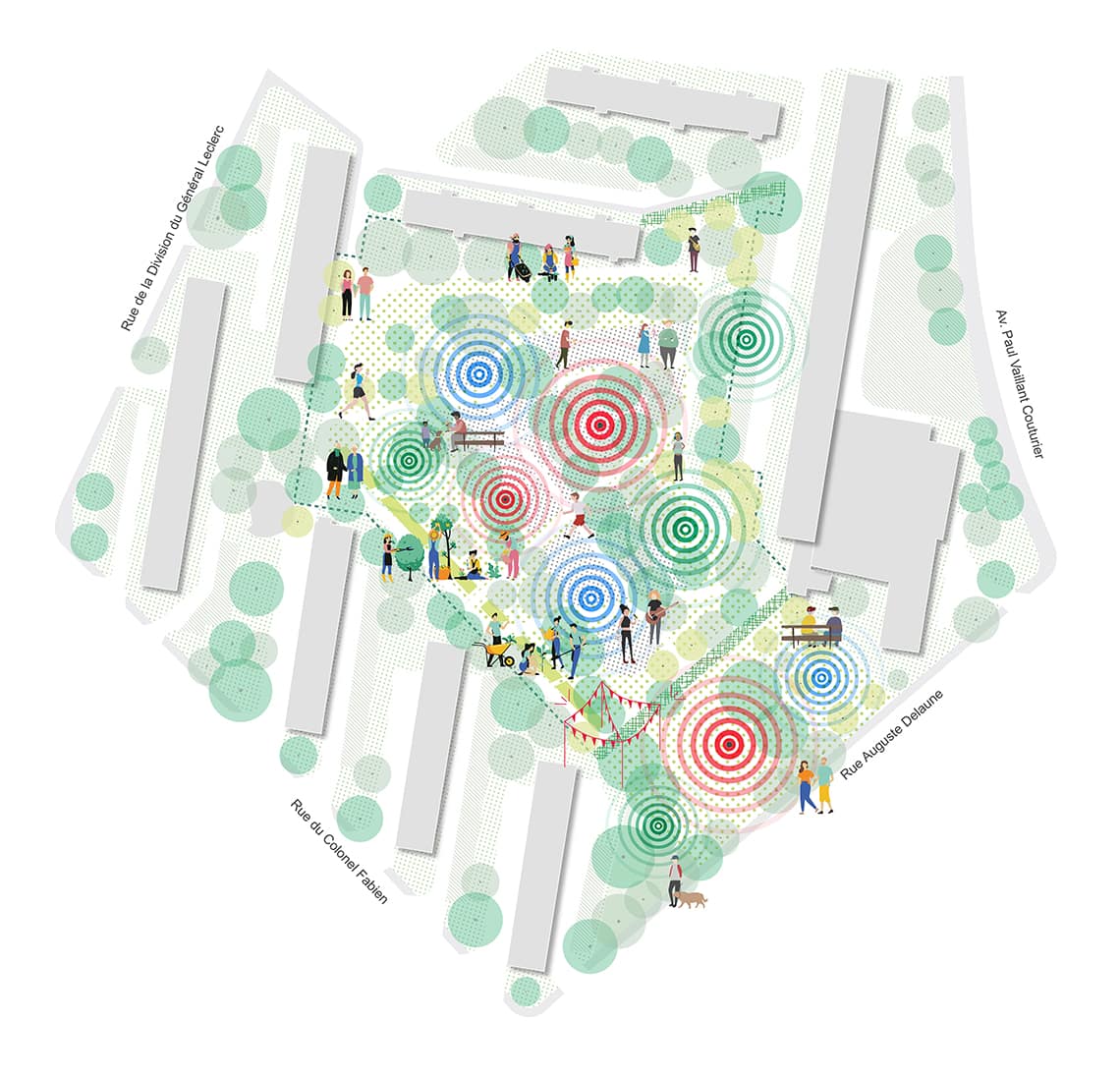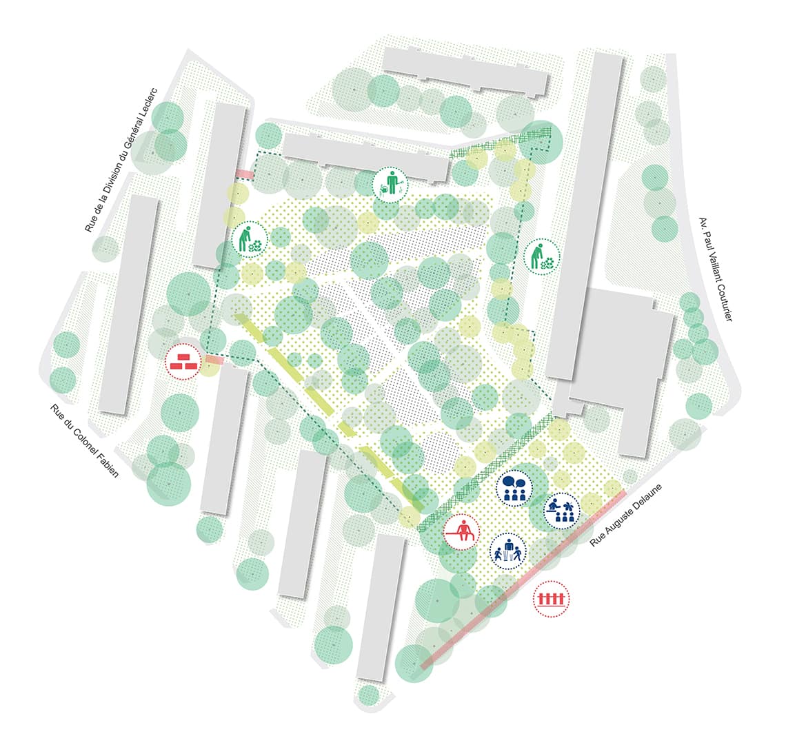 Assistance à maîtrise d’ouvrage pour le réaménagement du parc Erik Satie, comprenant : réalisation du diagnostic urbain et paysager. Conception des premières esquisses d’aménagement et de requalification, définition des usages, du fonctionnement et des principes de revégétalisation. Organisation et animation des ateliers de co-construction et de concertation avec les habitants et la ville. Rédaction du programme d’aménagement.