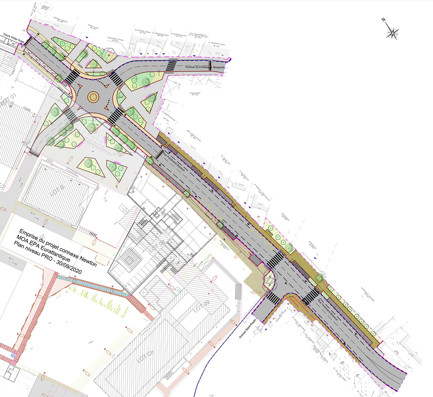 Aménagement de cheminements piétons accessibles et confortables, connectés à niveau avec les parvis aménagés dans le cadre des interfaces avec le projet Newton porté par l’EPA Euratlantique.