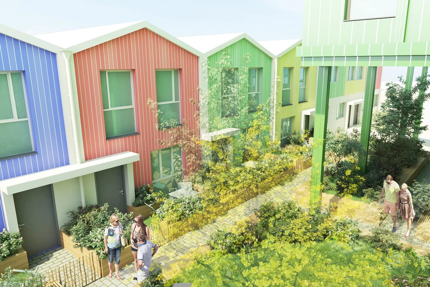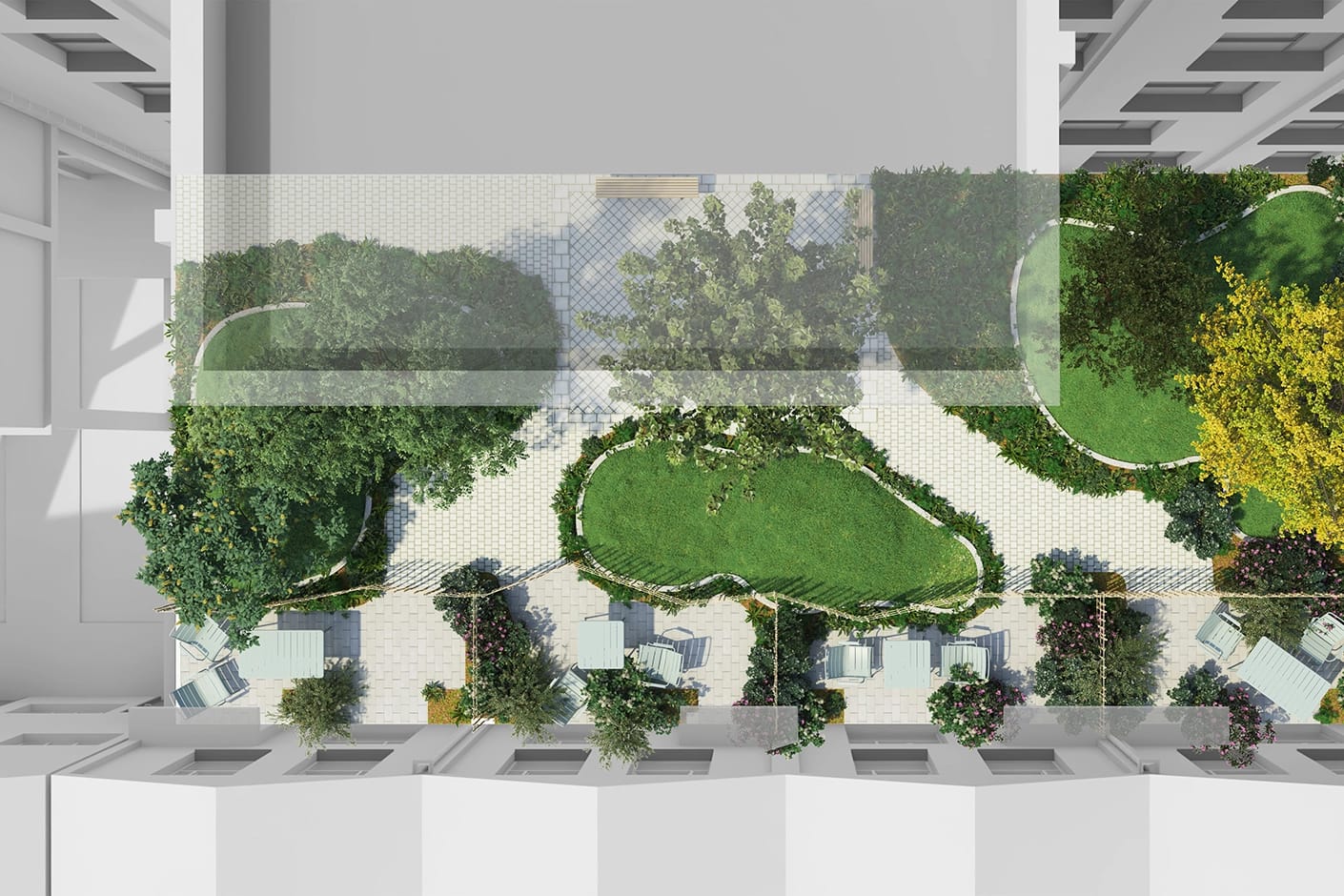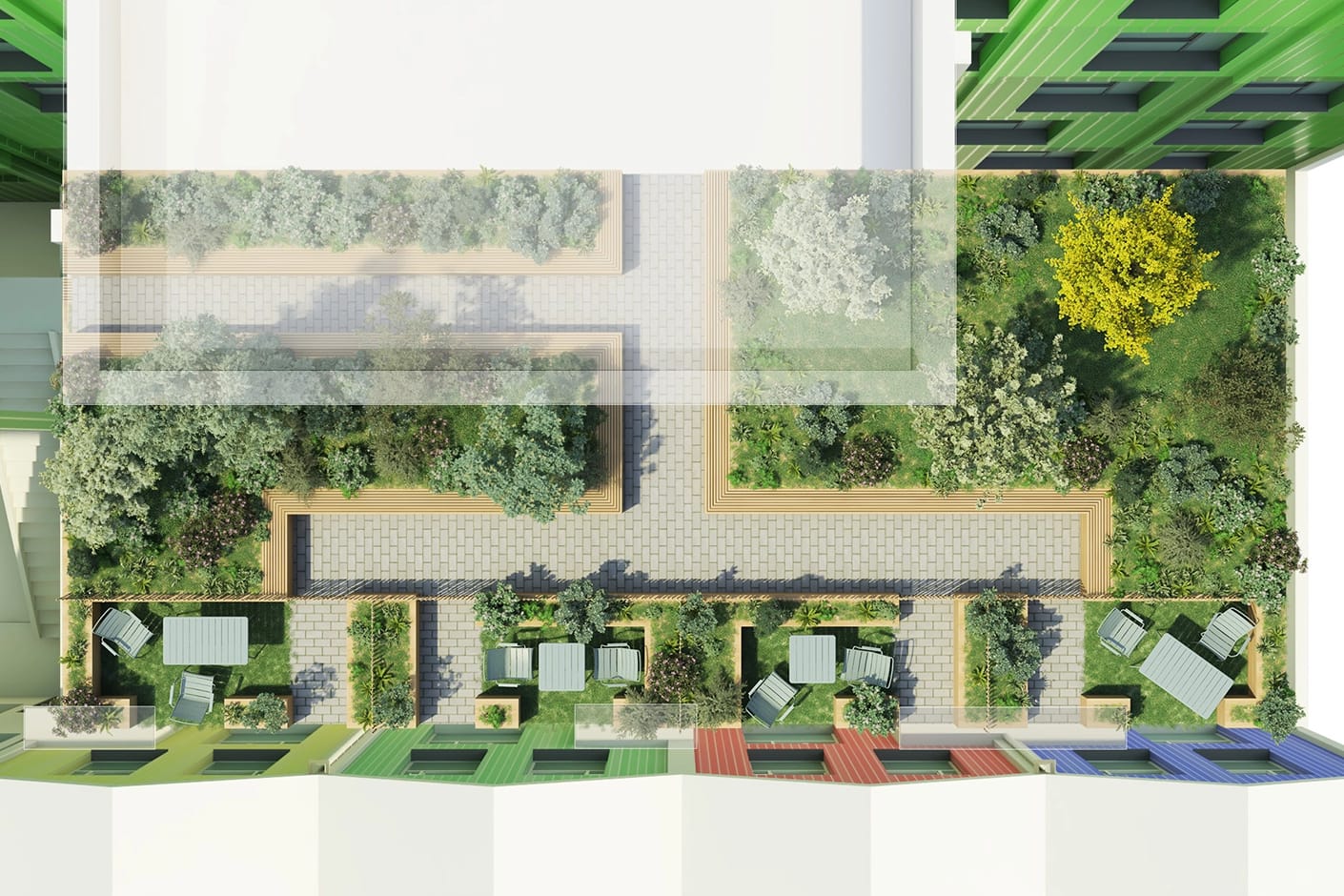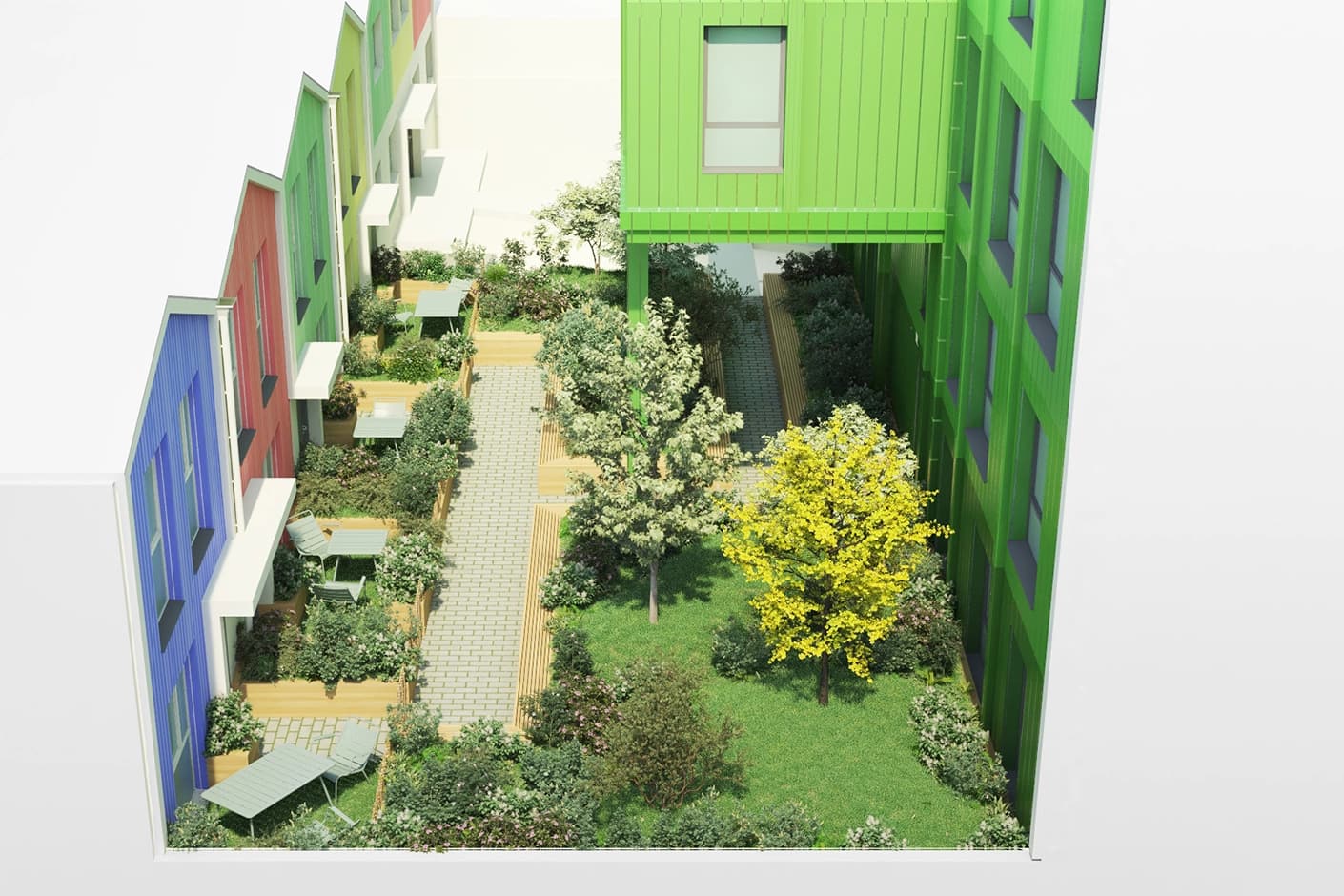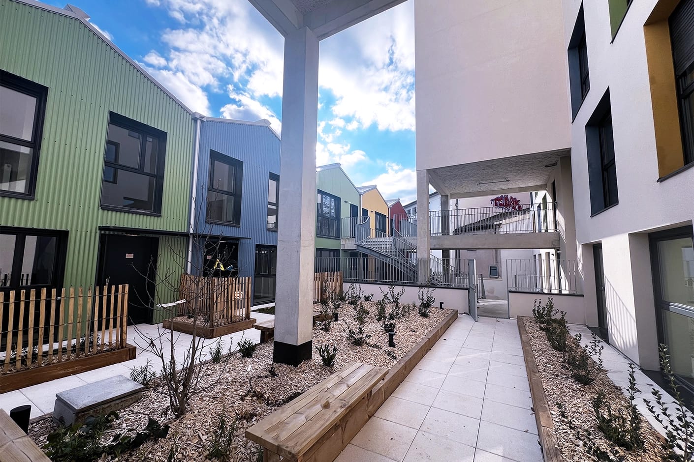 - Création d’aménagements extérieurs végétalisés et des circulations dans l’emprise du projet