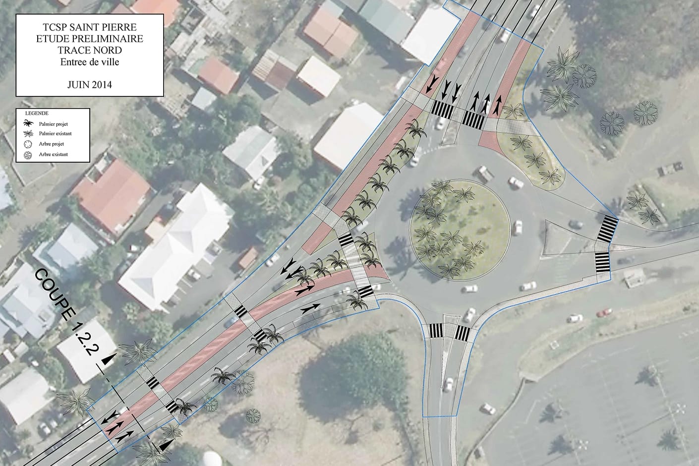 Études préliminaires d’insertion et de faisabilité d’un TCSP bus sur la commune de Saint-Pierre, reliant notamment l’aéroport à la ville.