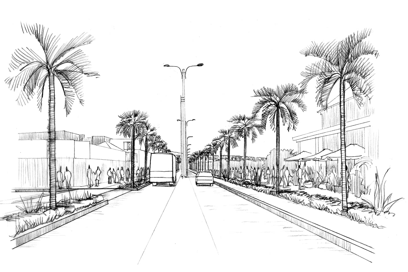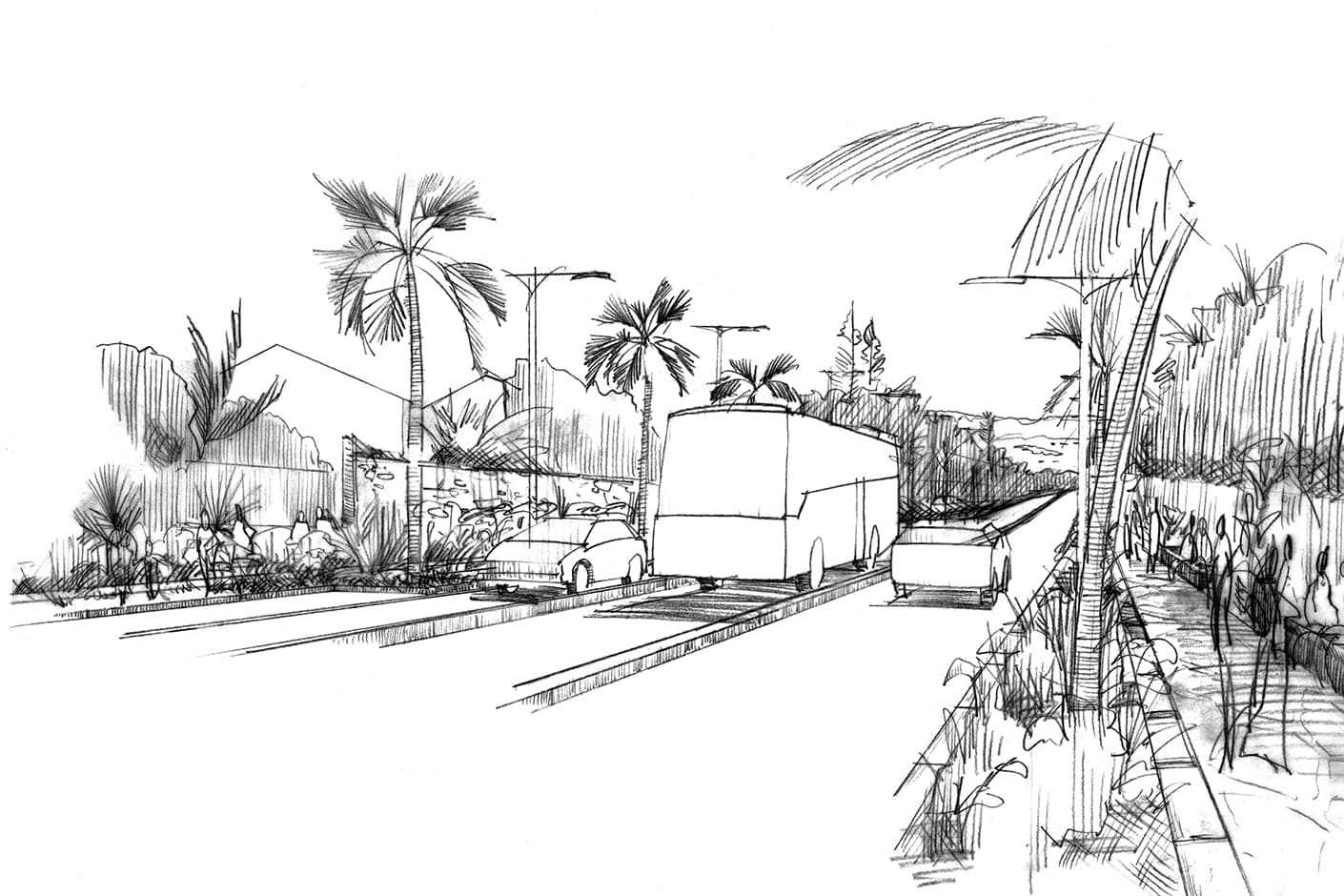 Propositions de tracé, analyse paysagère et urbaine de l’insertion du TCSP, propositions d’insertion de la ligne en site propre, et proposition de traitement urbain et paysager de 5 secteurs emblématiques.