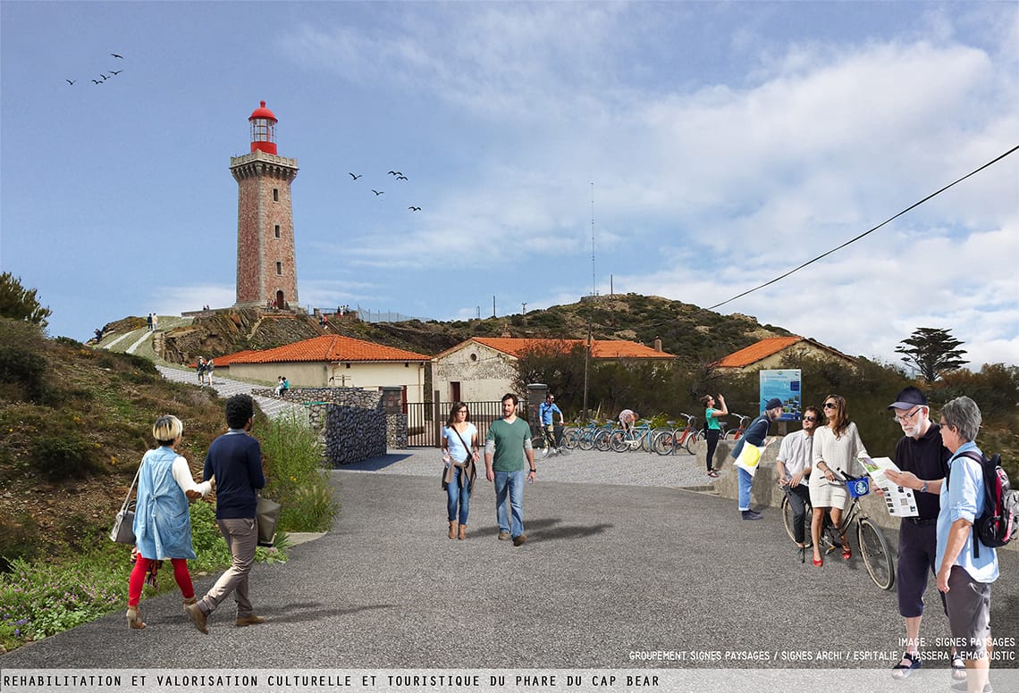 Réhabilitation et valorisation culturelle et écotouristique du Site classé et du Phare du Cap Béar et ses annexes (l’ensemble classé au titre des Monuments Historiques) : aménagement du seuil du sentier du Littoral à Port-Vendres, sécurisation et balisage du sentier sur la Pointe du Cap Béar, aménagement d’équipements d’accueil des visiteurs, randonneurs et cyclotouristes.